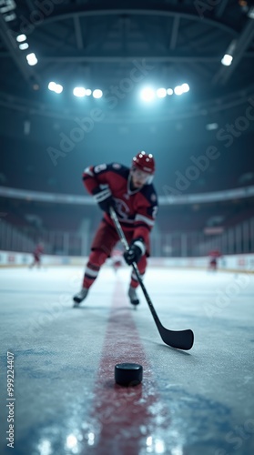 Obraz premium Professional ice hockey player shooting puck in arena