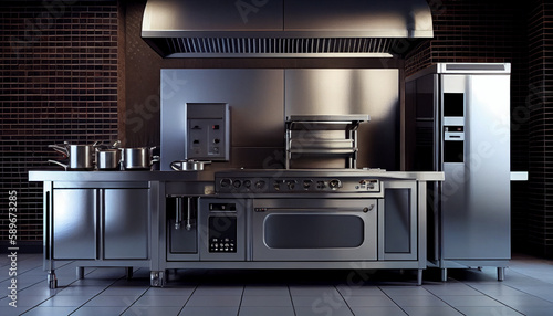 Fototapeta premium Professional kitchen, view counter in stainless steel.