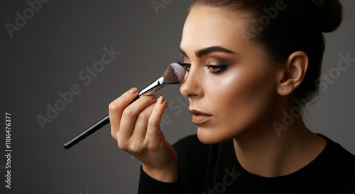 © Kenny, Fototapeta premium Professional makeup artist applying makeup in a bright, modern studio