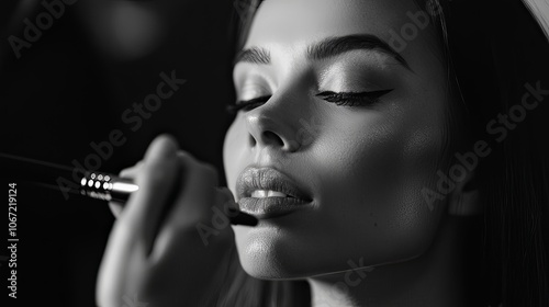 Obraz premium Professional makeup artist applying makeup on a model in a beauty studio.