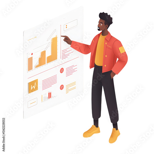 Fototapeta premium Professional man analyzing data on a digital screen, showcasing modern business analytics and growth strategies. The scene highlights innovation and technological advancement.