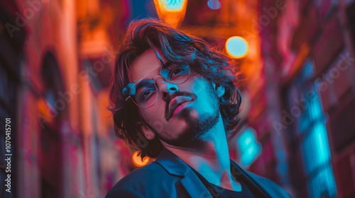 © sorin, Obraz premium Professional man in glasses dressed in a sharp suit, exuding confidence and style
