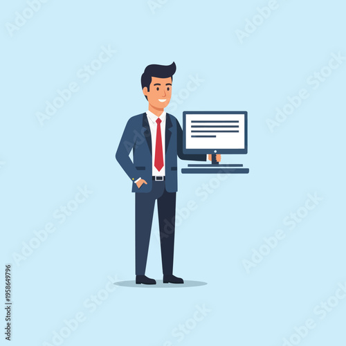 Obraz premium Professional Man Presenting Information on a Computer Screen with Confidence.