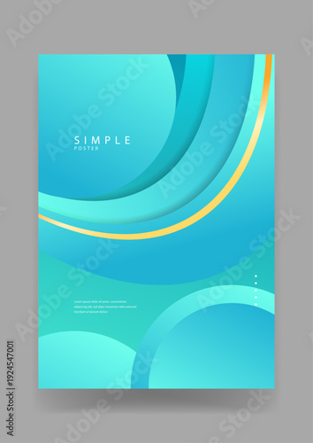 © Badr Warrior, Fototapeta premium Professional minimalist background featuring blue cyan gradients and overlapping fluid circular layers with a gold accent line