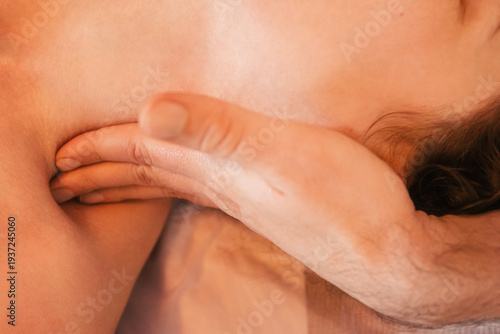 Fototapeta premium Professional Neck Massage Therapy Session Closeup