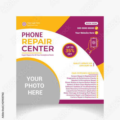 © CURIOUS TALENTS, Fototapeta premium Professional Phone Repair Center social media post design template