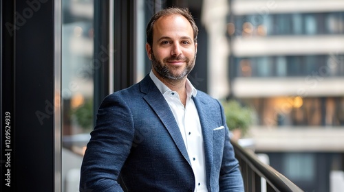 © Youttakone, Naklejka premium Professional portrait of a corporate brand strategist in modern urban office space