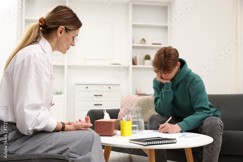 Fototapeta premium Professional psychologist working with teenage boy in office