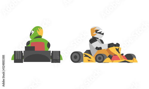 © topvectors, Fototapeta premium Professional racer in uniform sitting in race car set cartoon vector illustration
