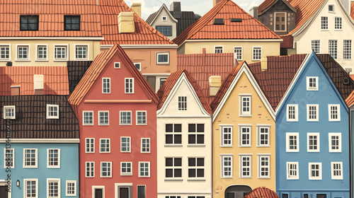 Fototapeta premium Professional Seamless Pattern of Scandinavian Houses in Cartoon Vector Style