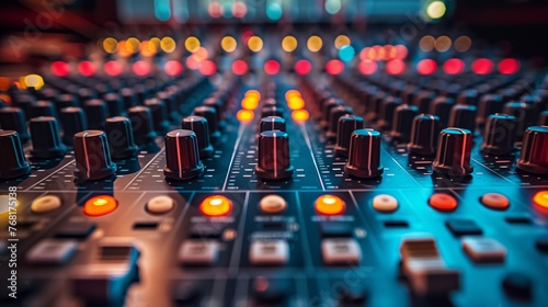 © MIKHAIL, Obraz premium Professional Sound Board With Knobs and Lights
