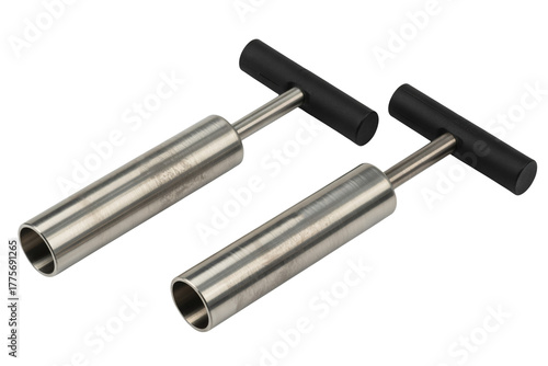 Naklejka premium Professional stainless steel coring tools ready for precision food preparation in a commercial kitchen environment, culinary expertise.