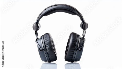 © Erica, Fototapeta premium professional studio headphones with leather cushions over ear headphones isolated on white background