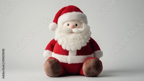 Fototapeta premium Professional Studio Shot of a Plush Santa Claus on a White Floor with Soft...
