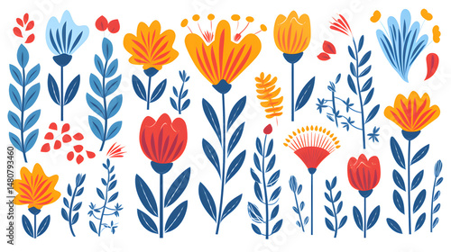 © Ava, Obraz premium Professional Stylized Floral Stencils for Creative Design Projects on White Background