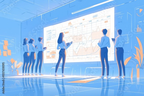 Obraz premium Professional Team Analyzing Data in Futuristic Conference Room