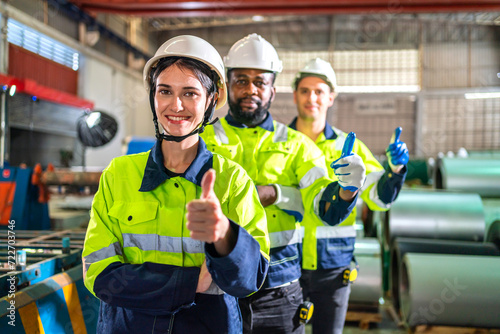 © Art_Photo, Obraz premium Professional team labor machanic engineer technician worker industrial work control with machine, manufacturing, factory, production line, Indusry 4.0, robot, industrial facility.business planning