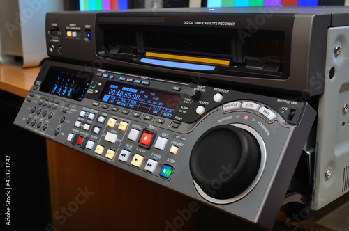 © Communar, Obraz premium Professional video recorder in TV production studio. Digital Betacam format