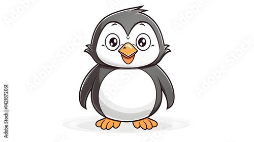 © Jordan, Obraz premium Professional Warm Gradient Line Drawing of a Happy Cartoon Penguin for Designs