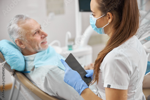 Fototapeta premium Professional young dental expert ready to begin dental examination