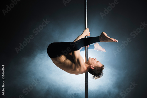 Fototapeta premium Professional young male performing a pole dance