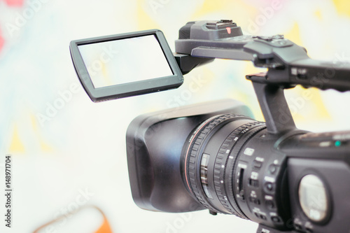 Naklejka premium Profi Filmkamera, Dreharbeiten, Liveberichterstattung