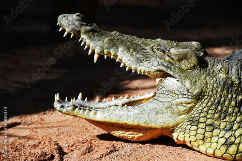 © Uzfoto, Obraz premium Profil krokodyla opalającego się