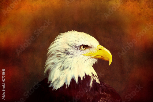 © fotoyou, Fototapeta premium Profile of a bald eagle on grunge background.