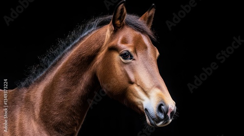 © h4kunA, Obraz premium Profile of a brown horse against black background