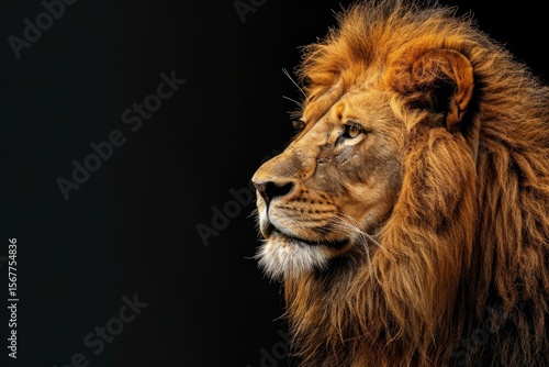 © nsit0108, Obraz premium Profile of a majestic lion showing its strength and power, looking away on a dark background