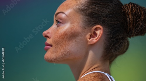 Fototapeta premium Profile of a woman with unique skin features.