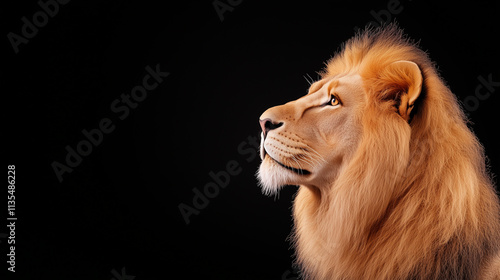 © andrasgyalog, Fototapeta premium Profile of Male Lion Against Black Background