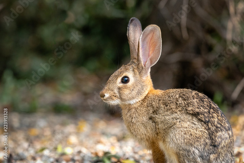 © Mary Lynn Strand, Fototapeta premium Profile of wild rabbit outdoors.