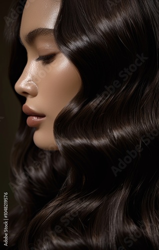 Fototapeta premium Profile of Woman with Glossy Dark Waves