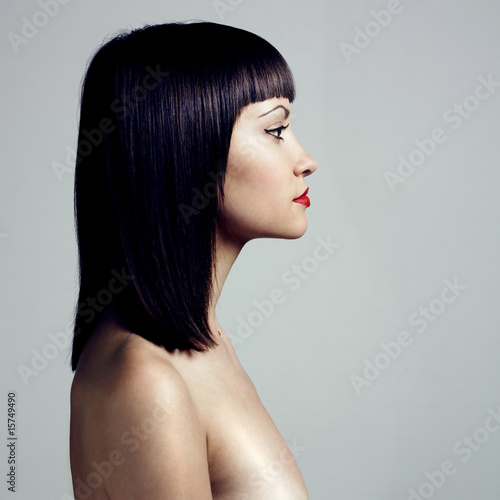 © Egor Mayer, Fototapeta premium Profile of woman with strict hairstyle