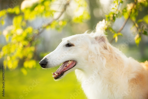 © Anastasiia, Fototapeta premium Profile Portrait of russian borzoi dog outside