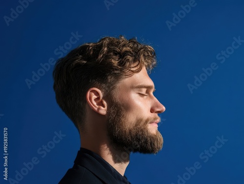 © Johannes, Fototapeta premium profile portrait professional isolated on a blue background