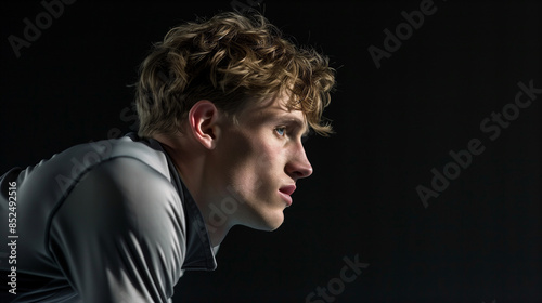 Obraz premium Profile Shot of a Male Model in a Fitted Grey Top