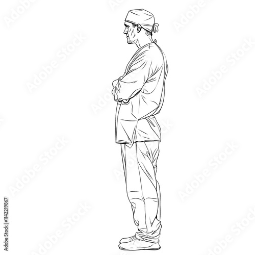 Fototapeta premium Profile sketch of a doctor in scrubs.