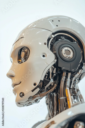 Fototapeta premium Profile view of a high-tech humanoid robot with an advanced neural interface and intricate wiring.