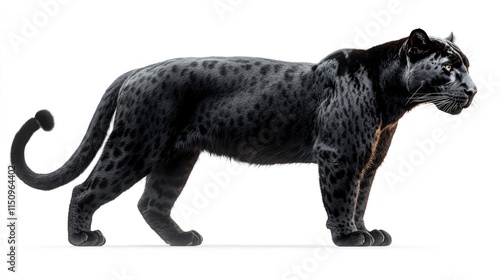 Fototapeta premium Profile view of a majestic black jaguar, isolated on white background.