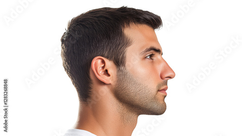 Fototapeta premium Profile view of a young man with short hair