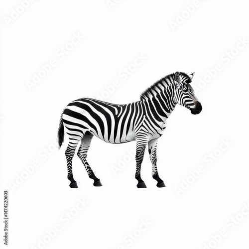 © Yothin, Fototapeta premium Profile View of a Zebra on White Background