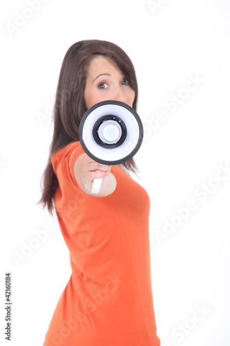 © auremar, Fototapeta premium Profile view of young woman holding megaphone