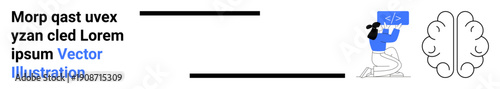 Fototapeta premium Programming, coding education, problem-solving, innovation, brainpower, artificial intelligence. Person holding codeboard standing next to brain icon. Programming and coding education concept