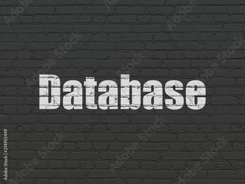 © Maksim Kabakou, Obraz premium Programming concept: Painted white text Database on Black Brick wall background