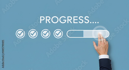 © Pixel Studio, Fototapeta premium Progress bar indicator concept with hand pushing forward for business and personal development