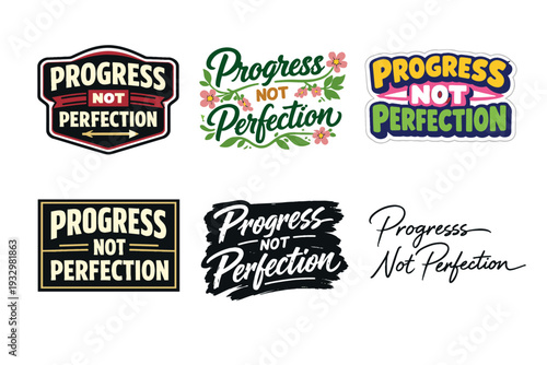 © 4zevar, Fototapeta premium Progress not perfection: motivational typography designs