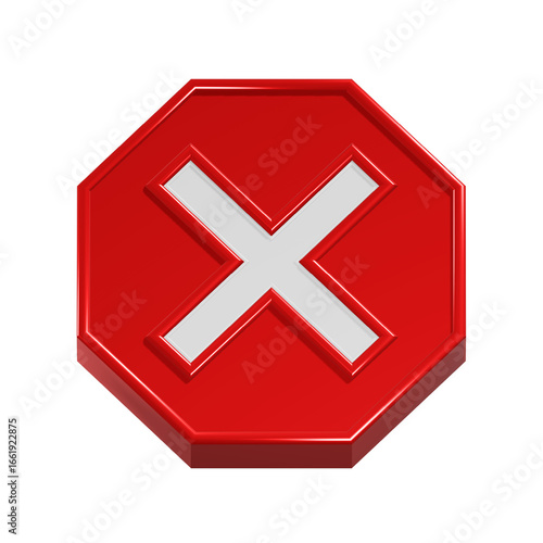 Fototapeta premium Prohibition Sign: A bold red octagonal sign displaying a white X graphically...