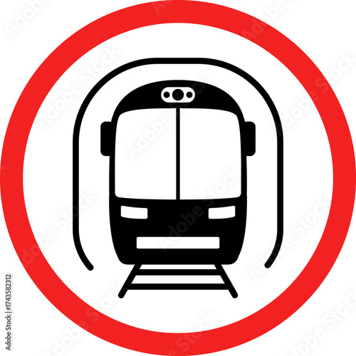 Obraz premium Prohibitory signs for specific vehicles, Vehicle prohibition signs vector. Train icon